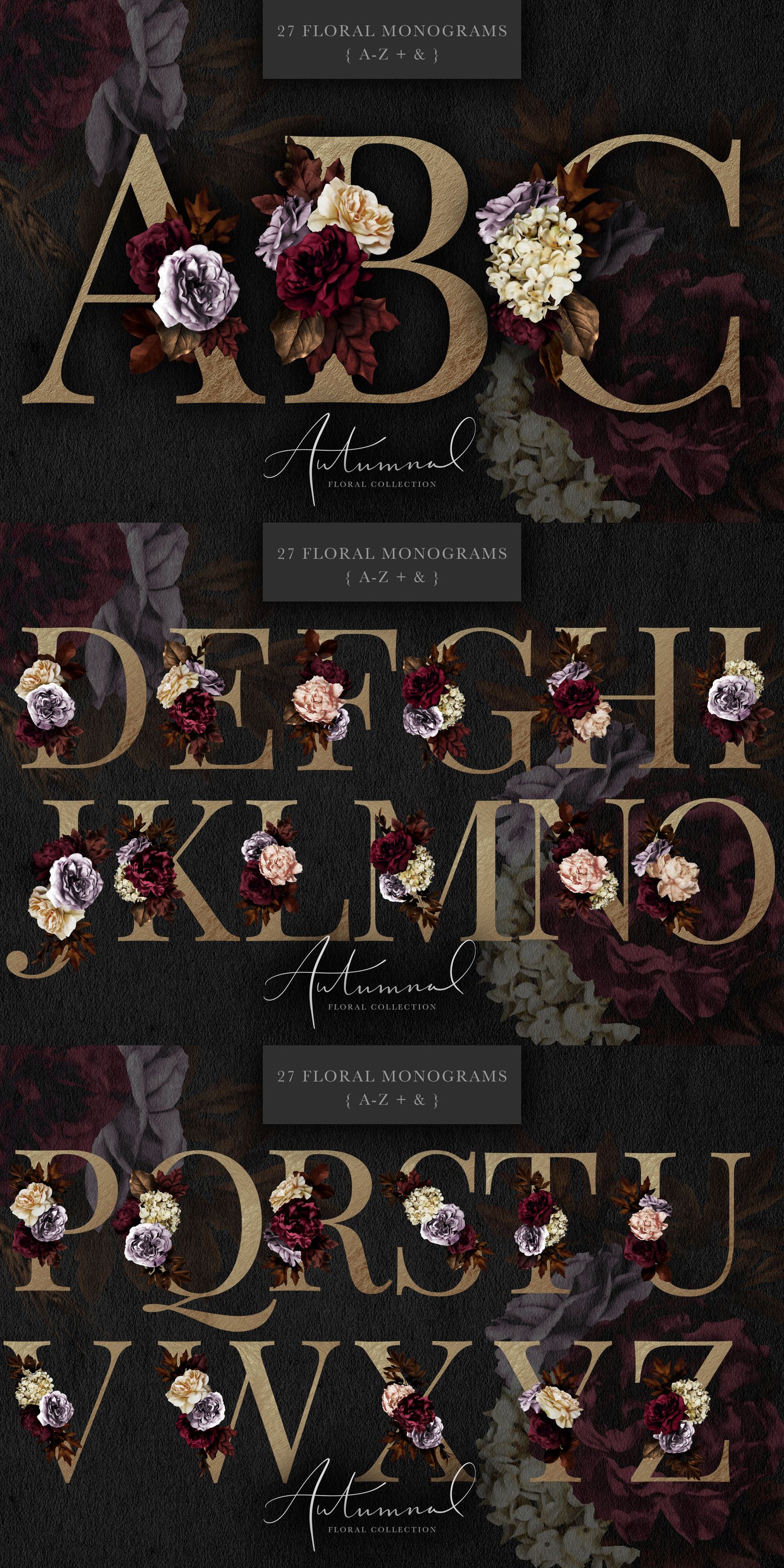 - 27 Floral Monograms | A-Z + Ampersand | PNG Format | Approx. 3300 pixels tall