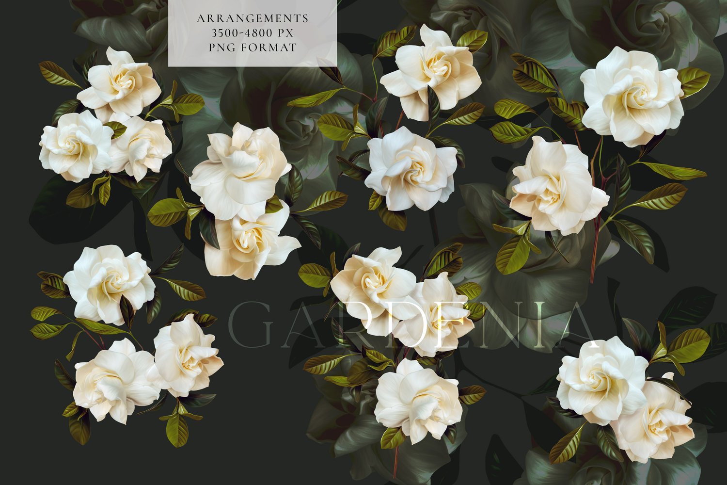 - 7 Painted Gardenia Floral Arrangements | 3500-4800 px | PNG Format