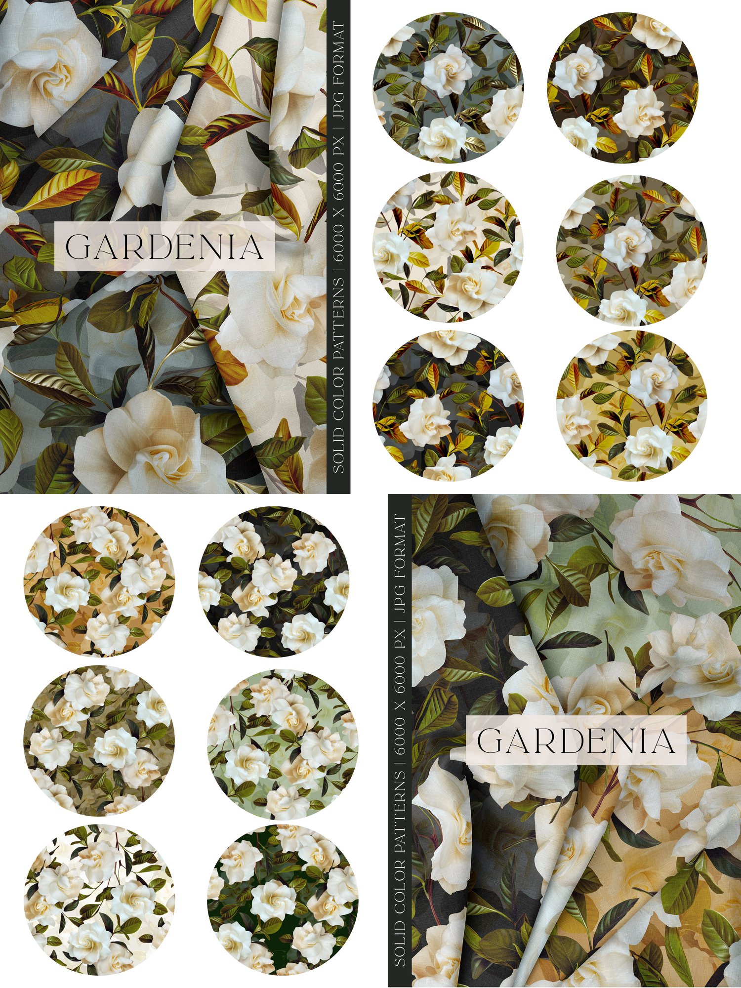 - 14 Colored Background Gardenia Patterns | 6000 x 6000 px | JPG Format
