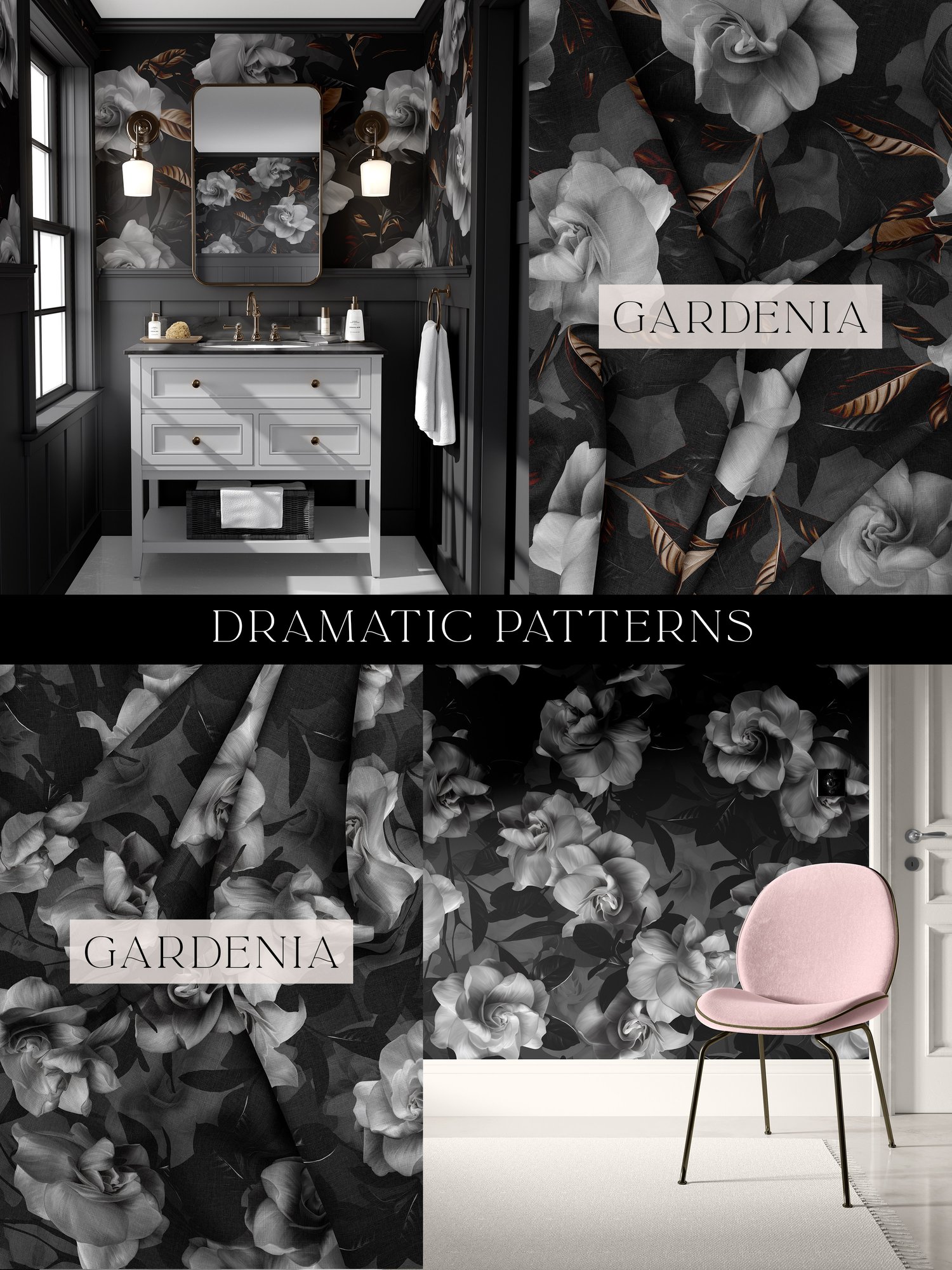 - 3 Gardenia Floral Patterns | 6000 x 6000 px | PNG Format