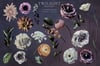 Twilight Floral Art Collection is a sumptuous set of flower graphics that are crisp, fresh, moody, and intoxicating. Roses, ranunculus, dahlias, snapdragons, mums, and peonies in purple, lilac, gold, white, and pink are combined in stunning background graphics, seamless patterns, bouquets, and are available individually. Perfect for greeting cards, wedding invitations, product packaging, and more.