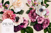 Plush Floral Art Collection is a sumptuous set of flower graphics that are fresh and decadent. Roses, ranunculus, anemones, mums and more in burgundy, cream, mauve, white and pink are combined in stunning background graphics, seamless patterns, bouquets, and are available individually. Perfect for greeting cards, wedding invitations, product packaging, and more.