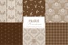 Prairie Farmhouse surface pattern collection includes 6 cozy and charming seamless patterns. Featuring hand drawn florals, stripes, and gingham in a dark brown and beige color palette.