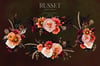 Russet Boho Floral Clip Art Set features a huge collection of florals in orange, burgundy, white, pink, and cream. Pattern, bouquets, backgrounds, and more.