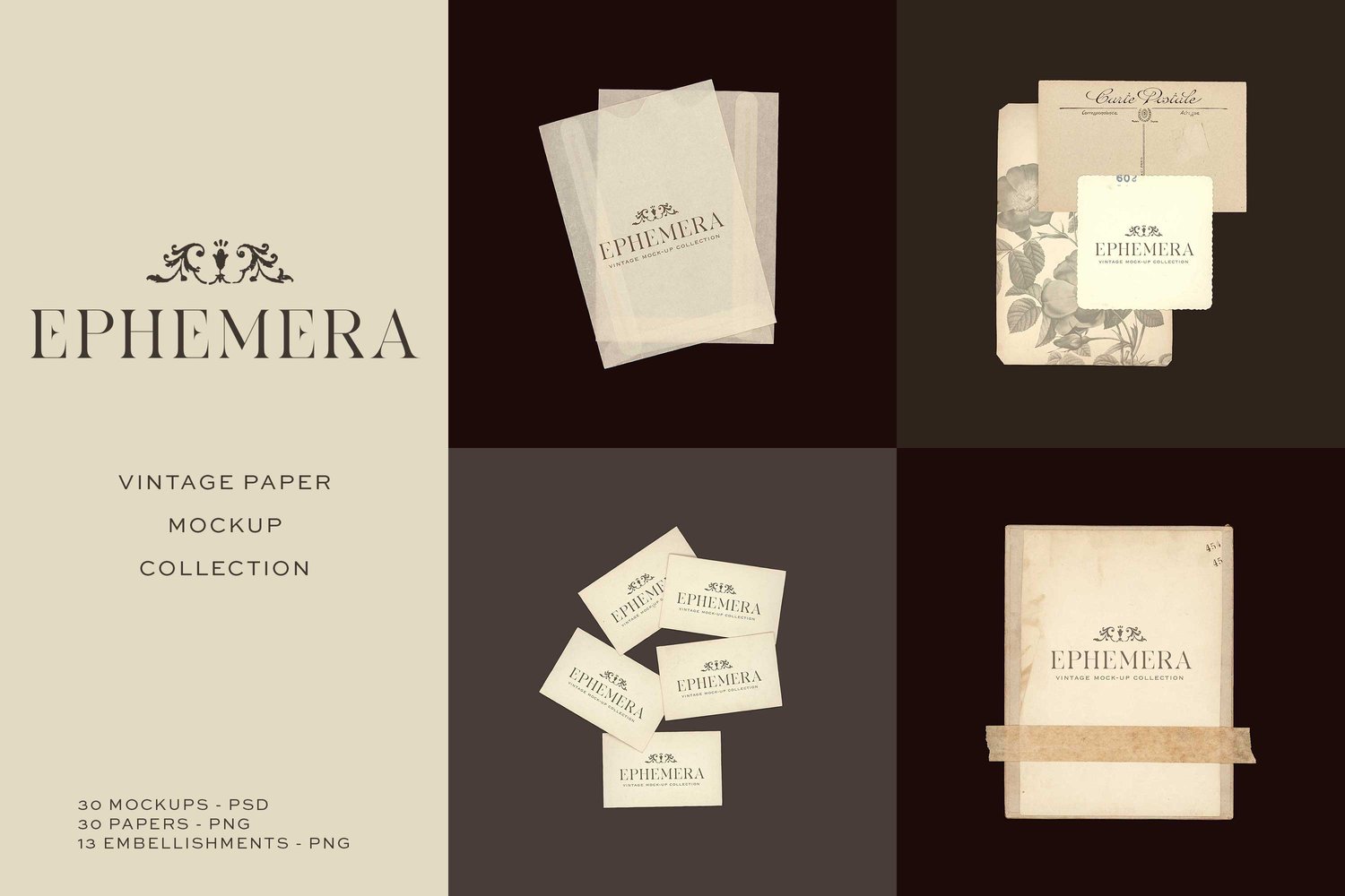 - 30 Vintage Paper Branding Mockups | 6000 x 6000 px | PSD Format | Smart Objects