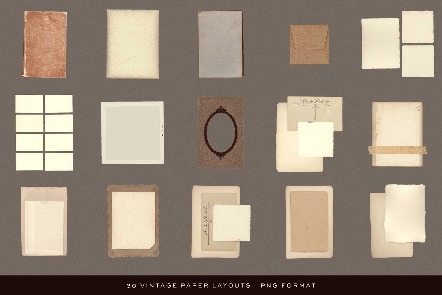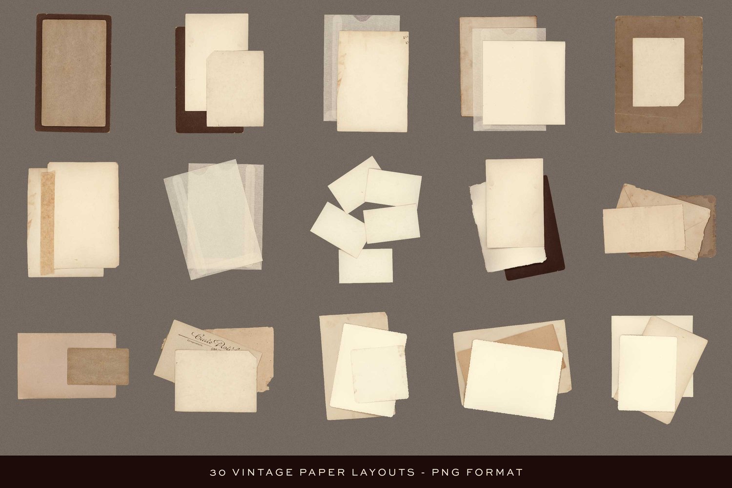 - 30 Vintage Paper Layouts | Large Scale | PNG Format | Transparent Background